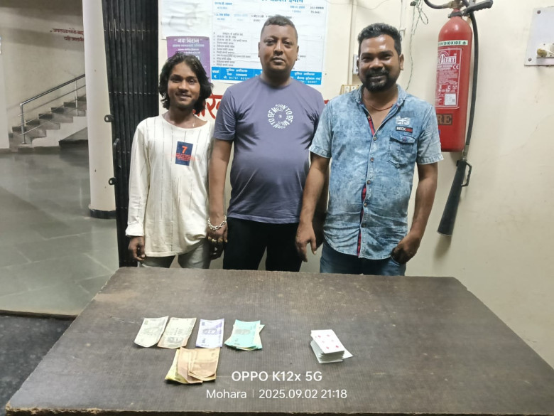 पुलिस अधीक्षक महोदय मोहित गर्ग के निर्देशन, अतिरिक्त पुलिस अधीक्षक महोदय राहुल देव शर्मा के मार्गदर्शन एवं पुलिस अनुविभागीय अधिकारी डोंगरगढ़ आशीष कुंजाम के पर्यवेक्षण में अवैध शराब बिक्री ,जुआ, सटटा के विरूद्ध चलाये जा रहे अभियान के तहत चौकी प्रभारी मोहारा निरीक्षक ढाल सिंह साहू के नेतृत्व में टीम गठित कर पुलिस चौकी क्षेत्र के ग्राम कसारी में राकेश यादव पिता स्व0 सूनाराम यादव उम्र 40 साल निवासी ग्राम सुकुल दैहान पुलिस चौकी सुकुलदैहान थाना लालबाग जिला राजनांदगांव को अंडा दुकान की आड़ में लोगों को शराब पीने की सुविधा उपलब्ध कराते हुए पाए जाने पर धारा 36 (सी) आबकारी एक्ट के तहत कार्यवाही किया गया तथा रानीगंज रोड बरगद पेड़ के नीचे में 52 पत्ती ताश से रूपये पैसे का दांव लगाकर जुआ खेल रहे जुआरियो की घेराबंदी कर रैडकार्यवाही की गयी जिसमेें जुआरियान 01. राजा श्रीवास पिता स्व० लल्ला श्रीवास उम्र 43 साल निवासी रेवाड़ीह राजनांदगांव 02. उमेश यादव पिता स्व० रामाधार यादव उम्र 38 साल वार्ड नंबर 8 मोतीपुर राजनांदगांव 03. करण साहू पिता स्व0 घनश्याम साहू उम्र 19 साल निवासी ग्राम अर्जुनी थाना डोंगरगांव जिला राजनांगांव छ0ग0 को पकडकर उनके पास एवं फड से नगदी रकम 1040/- रूपयें, 52 पत्ती ताश, 01 नग सफेद प्लास्टिक का बोरी को जप्त कर 13 जुआ एक्ट ,छ0ग0 जुआ प्रतिषेध अधिनियम 2022 की धारा 03 के तहत कार्यवाही किया गया।