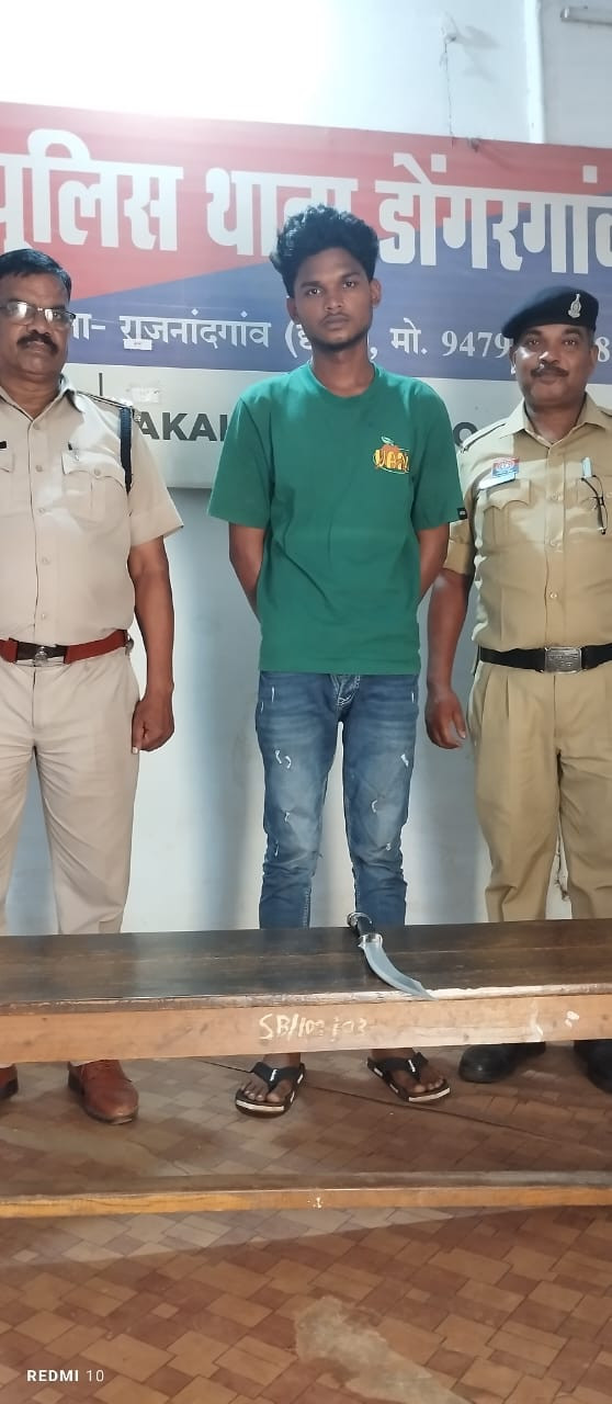 दिनांक- 27.08.2025 के जरिये मुखबीर से मोबाईल फोन के माध्यम से सूचना मिली की मुकेश कुमार चंद्रवंशी पिता खुबचंद चंद्रवंशी उम्र 19 साल निवासी आसरा थाना डोगरगांव जिला राजनांदगांव (छ0ग0) का जो ग्राम आसरा बाजार चौक सार्वजनिक जगह पर अपने पास रखे अवैध रूप से धारदार नुकिला लोहे का चाकु फायवर का मूठ लगा को आने जाने वाले लागो को डराते हुए घुम रहा था जिससे ग्राम में अंशांति का माहौल उत्पन्न हो रहा है कि रिपोर्ट पर डोंगरगांव पुलिस आरोपी के विरूद्ध धारा- 25, 27 आर्म्स एक्ट का कार्यवाही कर आरोपी से एक नग धारदार नुकिला लोहे का चाकु जप्त कर आरोपी को गिरफ्तार कर न्यायिक हिरासत में जेल भेजा गया है।
