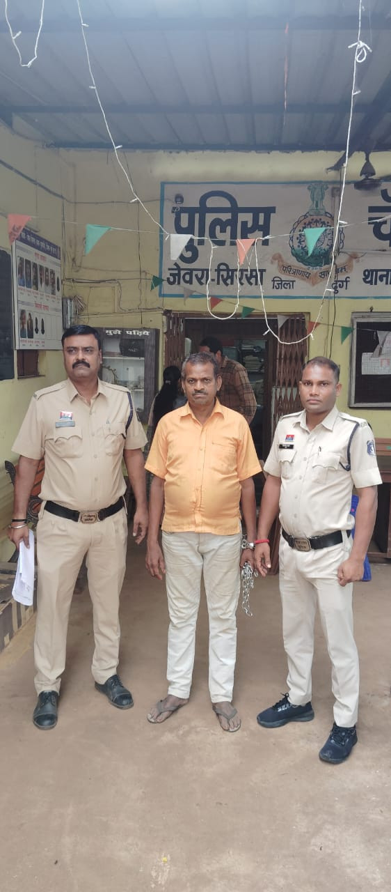 नाम आरोपी:- प्रहलाद यादव पिता स्व. रमेशर यादव उम्र 53 वर्ष पता सिरसाखुर्द, वार्ड नं. 09. चौकी जेवरा सिरसा थाना पुलगांव जिला दुर्ग