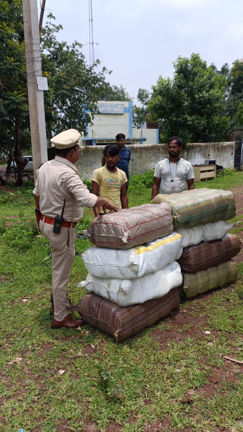 दिनांक 21/07/2025 को जरिये मुखबिर से सूचना प्राप्त हुई कि टाटा ट्रक क.-WB-23-E-4218 में अवैध रूप से गांजा जैसा मादक पदार्थ ट्रक मे छुपाकर उड़िसा से महाराष्ट्र ले जा रहा है जो दुर्ग से राजनांदगांव जीई रोड़ होते हुए निकलने वाला है कि सूचना से वरिष्ठ अधिकारियों को अवगत कराकर पुलिस अधीक्षक महोदय मोहित गर्ग राजनांदगांव के निर्देशन, अतिरिक्त पुलिस अधीक्षक महोदय राजनांददगांव राहूल देव शर्मा के मार्गदर्शन एवं नगर पुलिस अधीक्षक पुष्पेन्द्र नायक के पर्यवेक्षण में थाना प्रभारी सोमनी के नेतृत्व में थाना सोमनी पुलिस का टीम गठित कर तस्कीक हेतु हमराह स्टाफ एवं गवाहन के थाना सेमनी के सामने नाकाबंदी प्वाईंट लगाकर मुखबिर के बताये टाटा ट्रक क.- WB-23-E-4218 का आने का इंतजार किया जो दुर्ग की ओर से आते दिखा जिसे रोककर चालक परिचालक को हिरासत में लेकर गवाहनो एवं वाहन चालक व परिचालक की उपस्थिति में वाहन की तलाशी पर वाहन मे स्पंज आयरन भरा हुआ था, जिसके पीछे डाला के पीछे में 08 प्लास्टिक बोरियो में पीवीसी टेप से लिपटा बंडल भरा गांजा मादक पदार्थ मिला जिसे गवाहनो के समक्ष तौल कराने पर बोरियो सहित 215 किग्रा. गांजा कीमती करीबन 21,50,000/रूपये होना पाया गया, आरोपी चालक व परिचालक (1.) भरत कुमार सिंह पिता रमाधार सिंह उम्र 32 साल साकिन ताजपुर थाना माझी जिला छपरा बिहार, (2.) पुरन लाल लड़िया उर्फ राजू पिता कुंजी लाल उम्र 28 साल साकिन ग्राम कुम्रोड़ा (रिचई) थाना सुआताला जिला नसिंगपुर (म.प्र.) हाल झांकड़पारा धनकौड़ा थाना सदर धानुपाली जिला संबलपुर उड़िसा से पुछताछ करने पर बताया कि दिनांक 20/07/25 को कच्चा लोहा (स्पंज आयरन) को कौशल फेरो मेटल प्रा.लि. से भरकर शाम करीबन 05ः30 बजे वहां से जलना महाराष्ट्र के लिए निकले रात्रि करीबन 08ः00 बजे संबलपुर ढाबा में खाना खाने के बाद हम दोनो गाड़ी के पास आये तो एक व्यक्ति हम लोगे से बोले कि पार्सल ले जाओगे एक बोरे का 5000 रू. देगें तब हम लोग पार्सल ले जाने के लिए राजी हो गये सोहेला के 01 किमी पहले करीबन 12ः00 बजे रात्रि में तीन आदमी टेम्पू से 08 बोरियो मे माल लेकर आये। हम लोग पैसे की लालच में आकर गांजा पार्सल को महाराष्ट्र ले जाने के लिए तैयार हो गये। आरोपीगण का कृत्य धारा 20 (ख) एन.डी.पी.एस एक्ट का घटित करना पाये जाने से धारा सदर का अपराध दर्ज कर विवेचना में लिया गया, आरोपीगण से बोरी सहित 215 किग्रा. गांजा कीमती करीबन 21,50,000/रूपये एवं घटना में प्रयुक्त वाहन ट्रक क.-WB-23-E-4218 किमती-25,00,000/रू., दो मोबाईल 25,000/ रू. जुमला किमती-46,75,000/ रू. को विधिवत जप्त कर कब्जा पुलिस लिया गया। आरोपीगण (1.) भरत कुमार सिंह पिता रमाधार सिंह उम्र 32 साल साकिन ताजपुर थाना माझी जिला छपरा बिहार, (2.) पुरन लाल लड़िया उर्फ राजू पिता कुंजी लाल उम्र 28 साल साकिन ग्राम कुम्रोड़ा (रिचई) थाना सुआताला जि