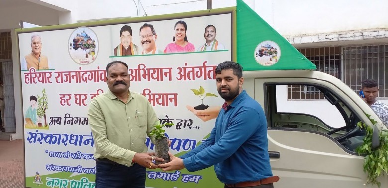 हरेली के अवसर पर हरियर राजनांदगाँव महाभियान के दूसरे वर्ष नगर पालिक निगम राजनांदगाँव ने एक कदम आगे बढ़ते हुए हर घर हरियाली अभियान की शुरूआत की है। इसके अंतर्गत संस्कारधानी के वृक्षारोपण रथ को महापौर ने हरी झंडी दिखाकर रवाना किया। यह वाहन हर दिन पौधे लेकर रवाना होगा और हर वार्ड में नागरिकों को उनके घर पौधे देंगे। साथ ही पौधे का रोपण कर उसे सहेजकर रखने की भी अपील करेंगे। शहर को हरा भरा बनाने तथा जनसामान्य में प्रकृति के प्रति लगाव उत्पन्न करने की दिशा में यह कारगर पहल की गई है।