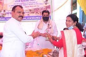 छत्तीसगढ़ शासन द्वारा प्रदेश में हरेली त्यौहार गौठानों में मनाये जाने दिये गये निर्देश के अनुक्रम में नगर निगम राजनांदगांव ने महापौर श्रीमती हेमा सुदेश देशमुख की उपस्थिति में नवागांव गौठान में हरेली महोत्सव का आयोजन किया। महोत्सव में एस.एल.आर.एम. सेन्टर की स्वच्छता दीदीयों ने छत्तीसगढ़ की पारंपरिक खेल गेडी, फुगड़ी, कुर्सी दौड आदि खेलों में उत्साह से भाग लिया। कार्यक्रम में गौसेवा आयोग के उपाध्यक्ष मन्ना यादव, छ.ग. खादी ग्रामोद्योग के सदस्य श्रीकिशन खण्डेलवाल, छ.ग. अल्पसंख्यक आयोग के सदस्य हफीज खान सहित निगम अध्यक्ष हरिनारायण पप्पू धकेता, पूर्व महापौर सुदेश देशमुख व नरेश डाकलिया, पूर्व नगर पालिका अध्यक्ष कुतबुद््दीन सोलंकी, पूर्व निगम अध्यक्ष रमेश डाकलिया, कैपा के सदस्य पंकज बांधव, निगम आयुक्त डॉ. आशुतोष चतुर्वेदी के अलावा महापौर परिषद के प्रभारी सदस्यगण, पार्षदगण, नामांकित पार्षदगण विशेष रूप से उपस्थित थे। अतिथियों ने गेड़ी चढकर, नारियल फेककर पारंपरिक खेलों का शुभारंभ किया एवं स्वच्छता दीदीयों द्वारा बनाये गये छत्तीसगढ़ी व्यंजनों का लुप्त उठाया। इस शुभ अवसर पर हर घर हरियाली अभियान के तहत पौधा वितरण करने पौधा रथ का अतिथियों ने हरि झंडी दिखाकर रवाना किया।