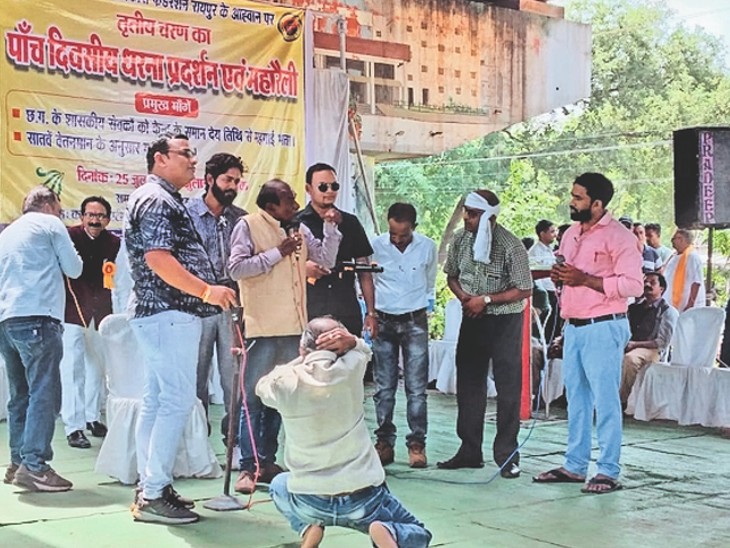 धरना स्थल के मंच को कर्मचारियों ने सीएम हाउस बनाया। नाटक में अपने एक साथी को सीएम बनाकर बैठाया। अपने प्रतिनिधि मंडल को उनसे मिलने भेजा। इस दौरान सीएम हाउस के भीतर कर्मचारियों की मांगों को लेकर होने वाली बातों को नाटक के माध्यम से सामने रखा गया।