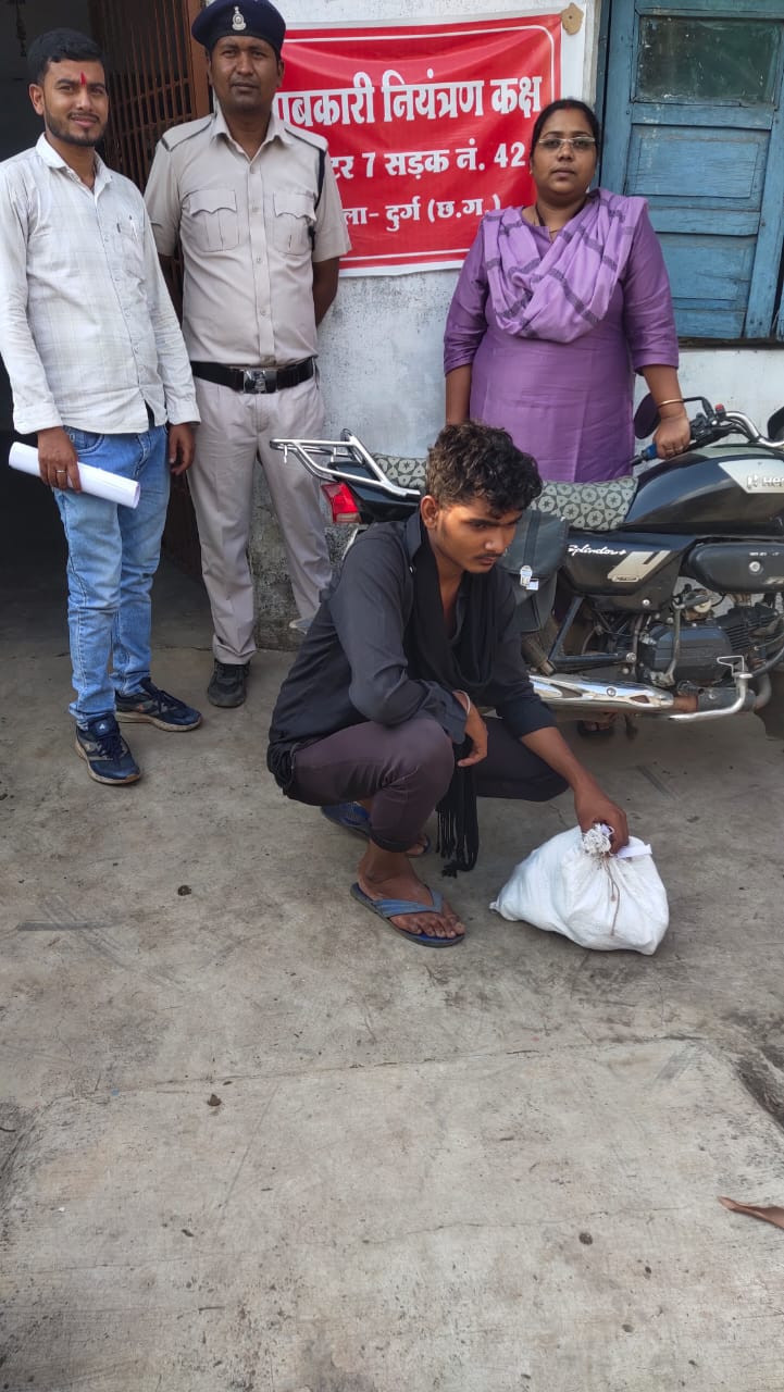 दुर्ग | कलेक्टर अभिजीत सिंह के निर्देशानुसार उपायुक्त आबकारी जी.के भगत व प्रभारी सहायक आयुक्त आबकारी सी.आर. साहू के मार्गदर्शन में विगत 03 दिवसों में अलग-अलग स्थानों से कुल 07 प्रकरण कायम किये गये हैं। प्रकरणों के क्रम में 10 मई 2025 को गश्त के दौरान महमरा एनीकट मार्ग पर जिला दुर्ग में अवैध शराब के परिवहन की सूचना पर कार्यवाही करते हुए आरोपी अमन कुंभकार पिता बलराम कुंभकार उम्र 21 वर्ष, निवासी बोरई थाना पुलगांव जिला दुर्ग के कब्जे से एक सफेद रंग की प्लास्टिक बोरी में 31 नग पाव देशी मदिरा मसाला, कुल मात्रा 5.58 बल्क लीटर शराब, जिसका बाजार मूल्य 3100 रूपये है एवं एक काले रंग की दुपहिया वाहन हीरो स्पेंडर क्रमांक सीजी 07 सीएम 4908 को जप्त कर आबकारी अधिनियम की धारा 34(2) के विरुद्ध प्रकरण दर्ज कर आबकारी उप निरीक्षक गीताजंली तारम द्वारा विवेचना में लिया जाकर आरोपी को जेल दाखिल किया गया है।